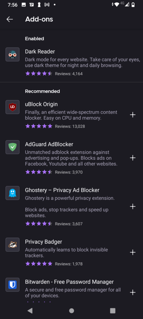 Surprisingly, I don’t see a search bar, but luckily, the Dark Reader add on is right there on the top