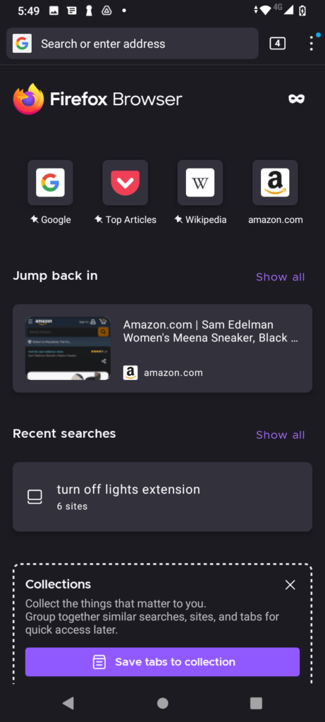 Now all websites including the Amazon Shopping website load with a dark background.