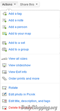 With the Redesigned version it comes with better arrangement of certain items like the Share button, which has been given prominent space so that the user uses sees it and uses it to good effect. The content size is also increased as the sides in old design were empty, have now been used up by the content. The buttons which had been placed above the image such as Edit Image, Rotate,etc. in the older version they have now been moved to a common place called ‘Actions’ which acts as a drop down.
