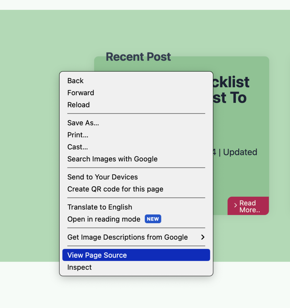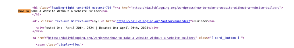 In this section, all the recent post titles are links. They are made using the <a> tag in HTML. If you are familiar with HTML, any <a> tag you see in the source code of a page in Chrome represents a link.