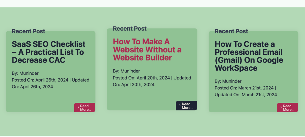 For example, consider the section on the dailyblogging.org website. When you hover your mouse over the Pink Text or the Read More button, the color of the text and button changes. If you click on them, your browser will navigate to a new page about how to create a website without using a website builder.