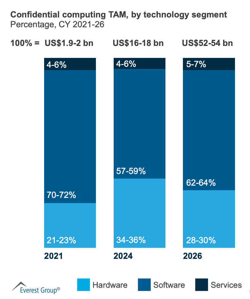 Like I mentioned in the previous stat, it is clear that the division of cloud computing is set to become an industry on its own. As for the Everest group survey, in the best-case scenario, the confidential computing industry is set to grow at an annual compound growth rate of 90-95% through 2026.